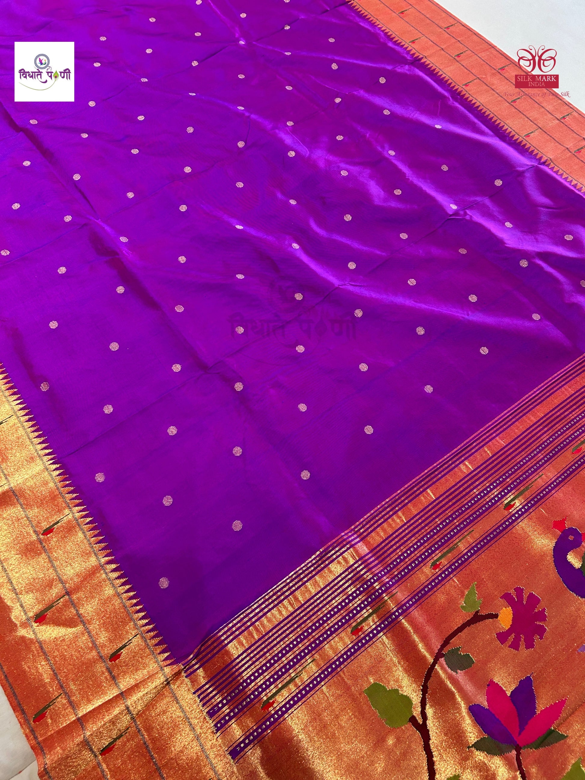 Handloom Pure Silk Triple Munia Border Paithani Saree